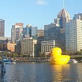 In case you haven’t noticed, fellow Pittsburghers, a giant 40-foot rubber duck has been docked in the Allegheny River for more than a week now.  Not sure why.  What is sure, however, is that this enormous floating yellow attraction has become inescapable.